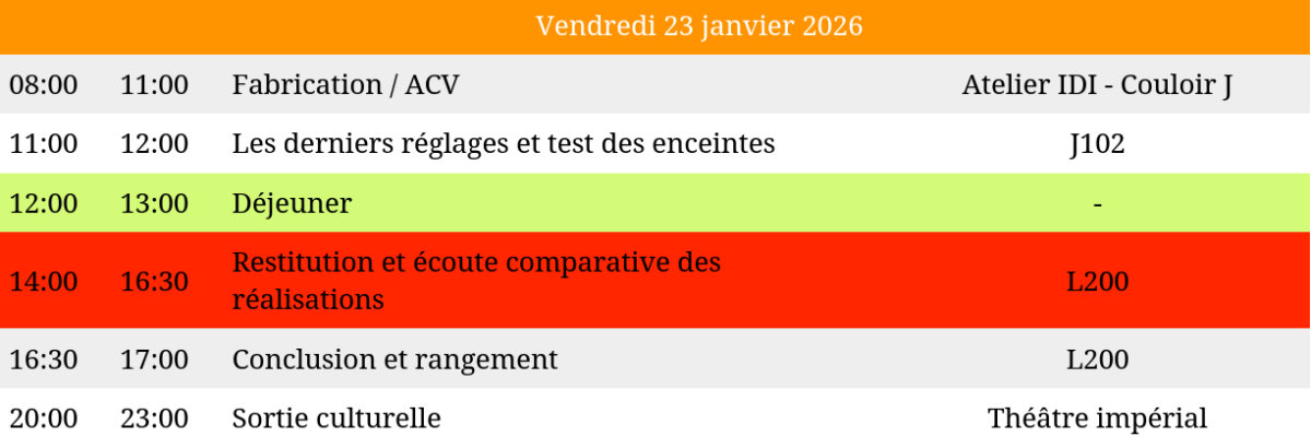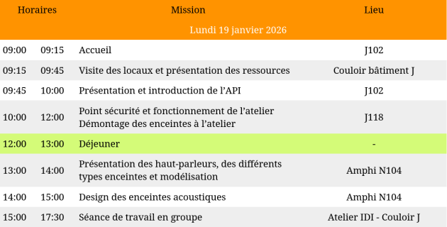 Après une introduction aux haut-parleurs et aux différents types d’enceintes acoustiques, les étudiants développeront un design qui réponde aux performances souhaitées, tout en respectant des contraintes budgétaires et techniques. Les créations seront ensuite soumises à une évaluation de leur impact environnemental et à une écoute comparative afin d’évaluer la qualité acoustique.