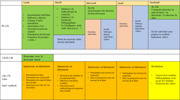 Cette activité pédagogique est destinée aux étudiants qui se posent la question de faire une thèse de doctorat. En effet, il est préférable de se poser cette question au plus tôt afin de ne pas rater cette opportunité par manque de connaissances ou encore de s’engager pour 3 ans sur une fausse idée.